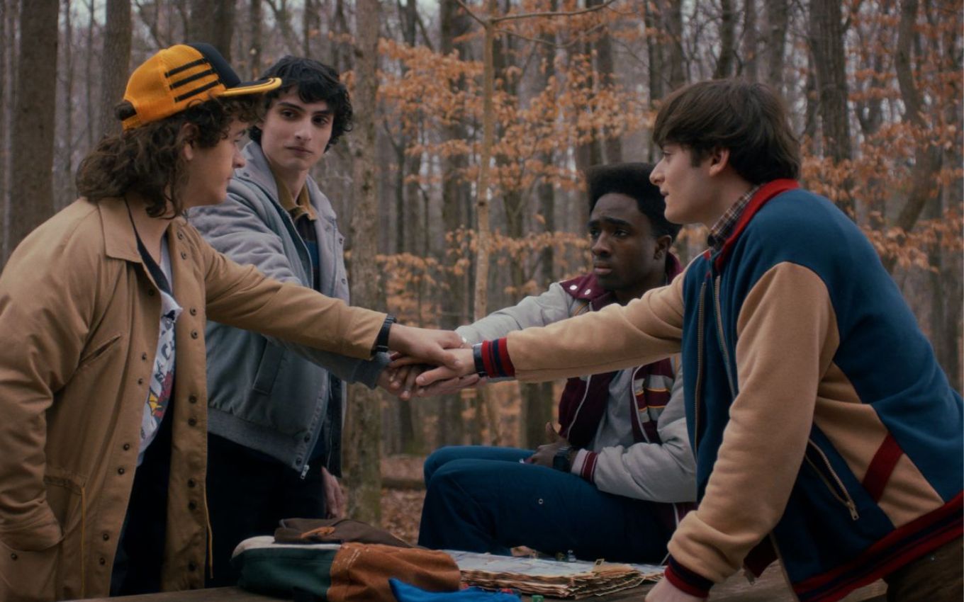 Gaten Matarazzo, Finn Wolfhard, Caleb McLaughlin e Noah Schnapp na 5ª temporada de Stranger Things. Foto: Reprodução/Netflix
