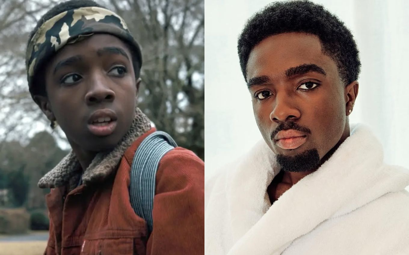 Caleb McLaughlin na 1ª temporada de Stranger Things e atualmente. Fotos: Reprodução/Netflix e Instagram