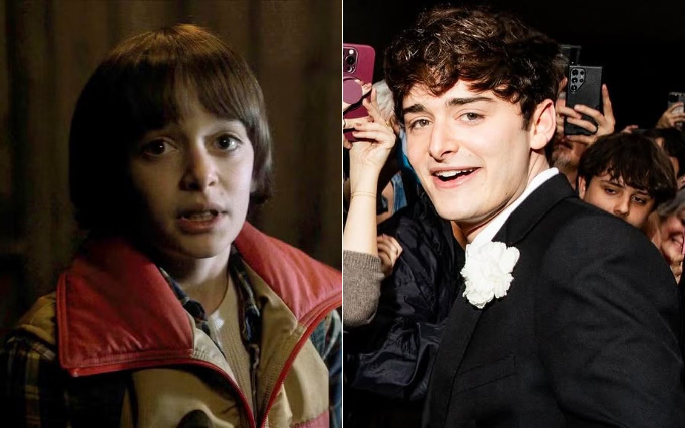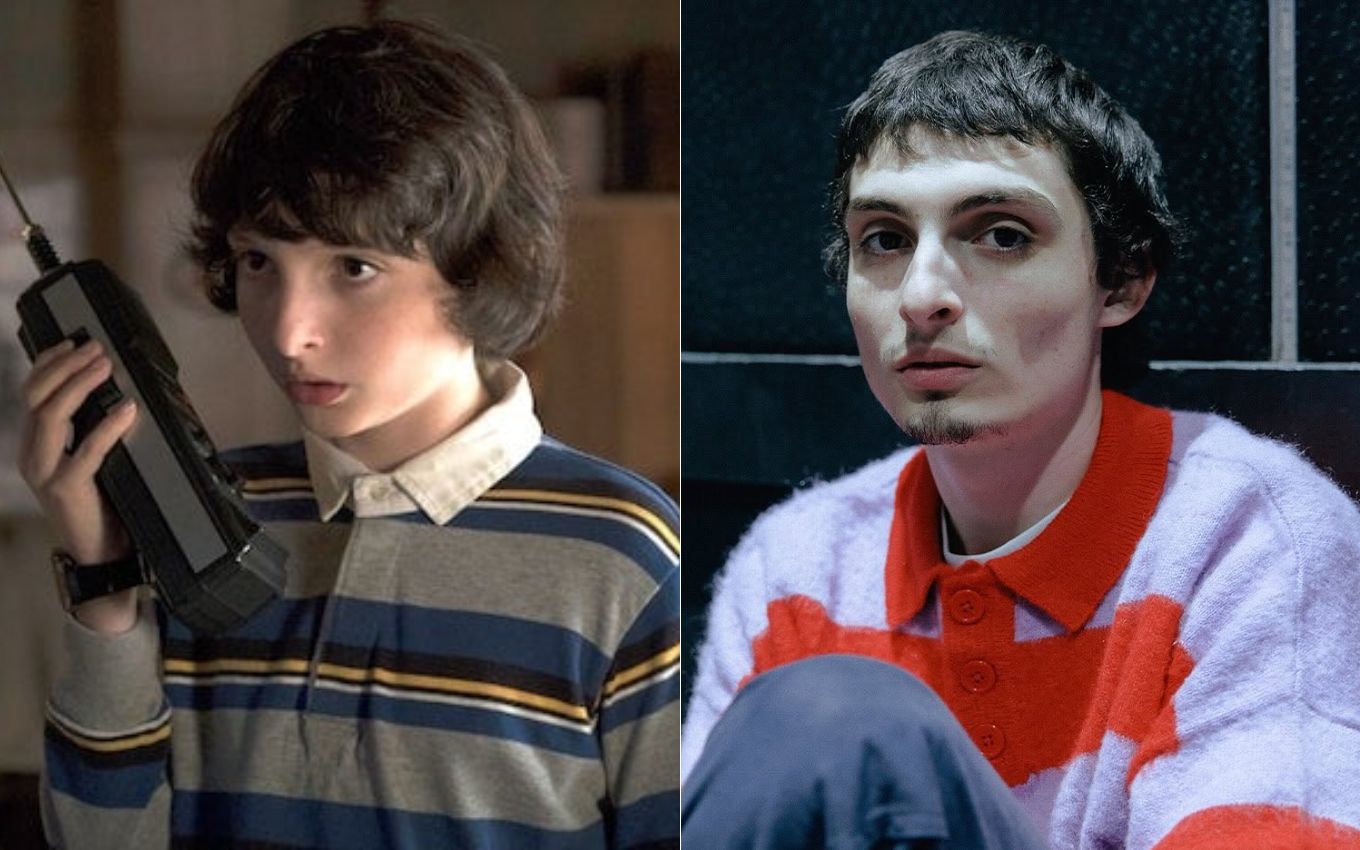 Finn Wolfhard na 1ª temporada de Stranger Things e atualmente. Fotos: Reprodução/Netflix e Instagram