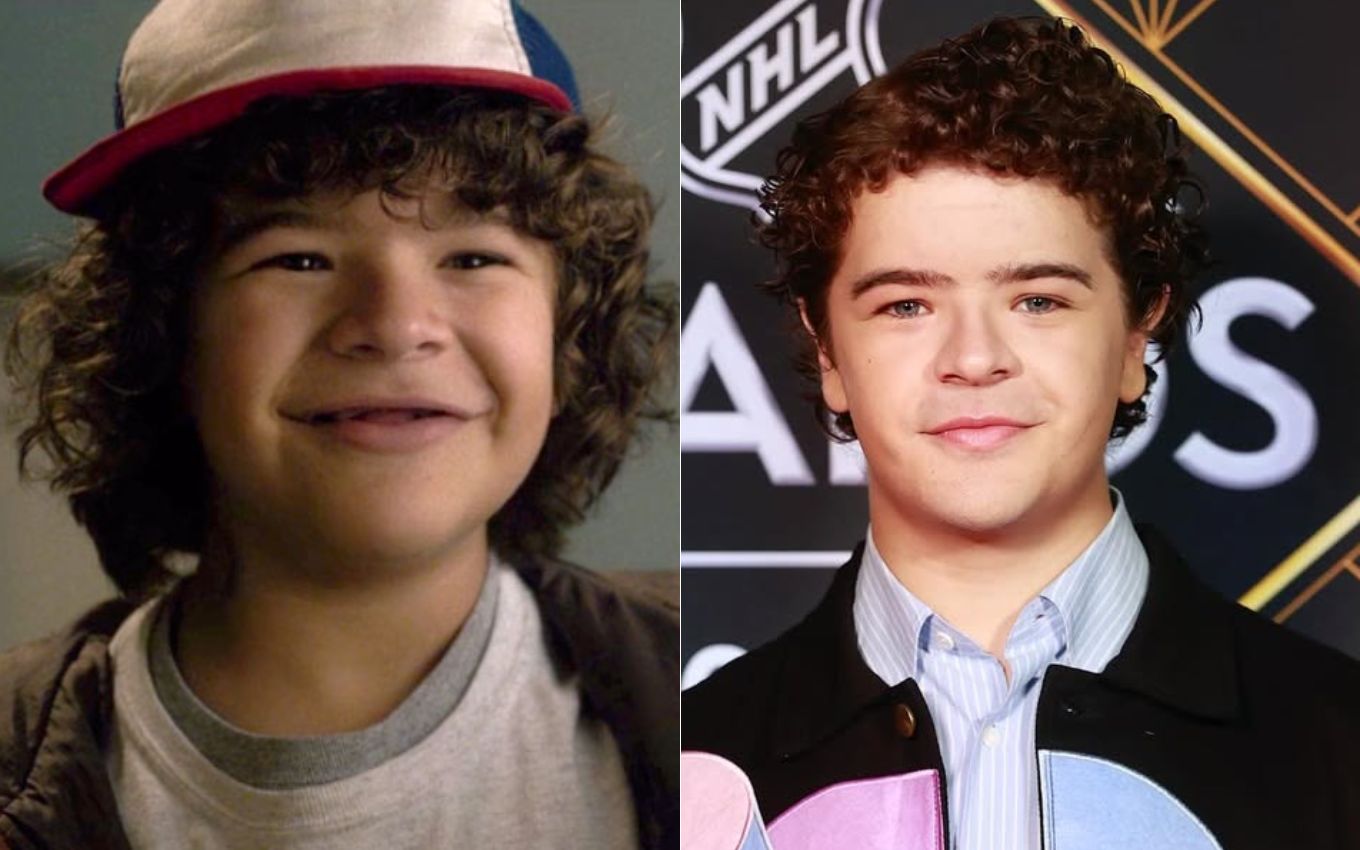 Gaten Matarazzo na 1ª temporada de Stranger Things e atualmente. Fotos: Reprodução/Netflix e Instagram