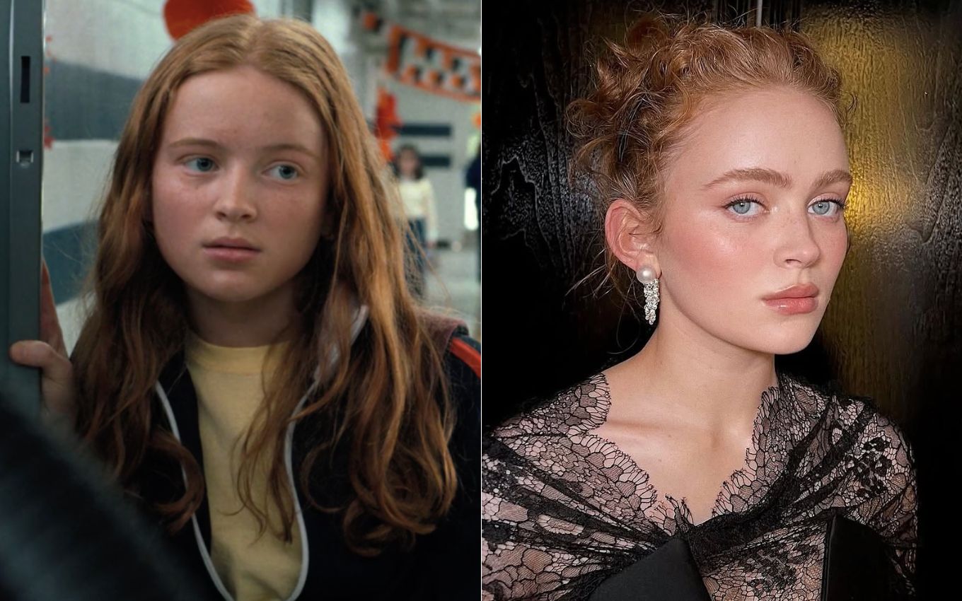 Sadie Sink na 2ª temporada de Stranger Things e atualmente. Fotos: Reprodução/Netflix e Instagram